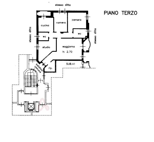 proprietà superficiaria quadrilocale con doppi servizi ultimo piano e cantina.