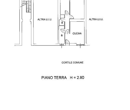 Trilocale al piano terra composto da soggiorno con angolo cottura, disimpegno, due camere, un piccolo locale lavanderia e un bagno