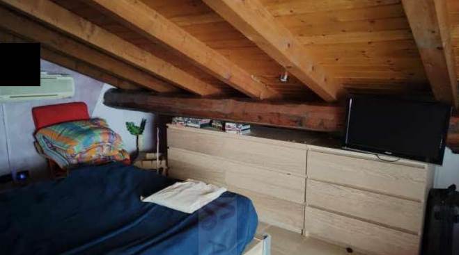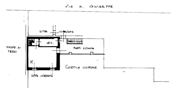 Ingresso su monolocale cucina/camera, bagno, oltre scala interna che collega sottotetto utilizzabile a soffitta con altezza media di 1,40 metri.