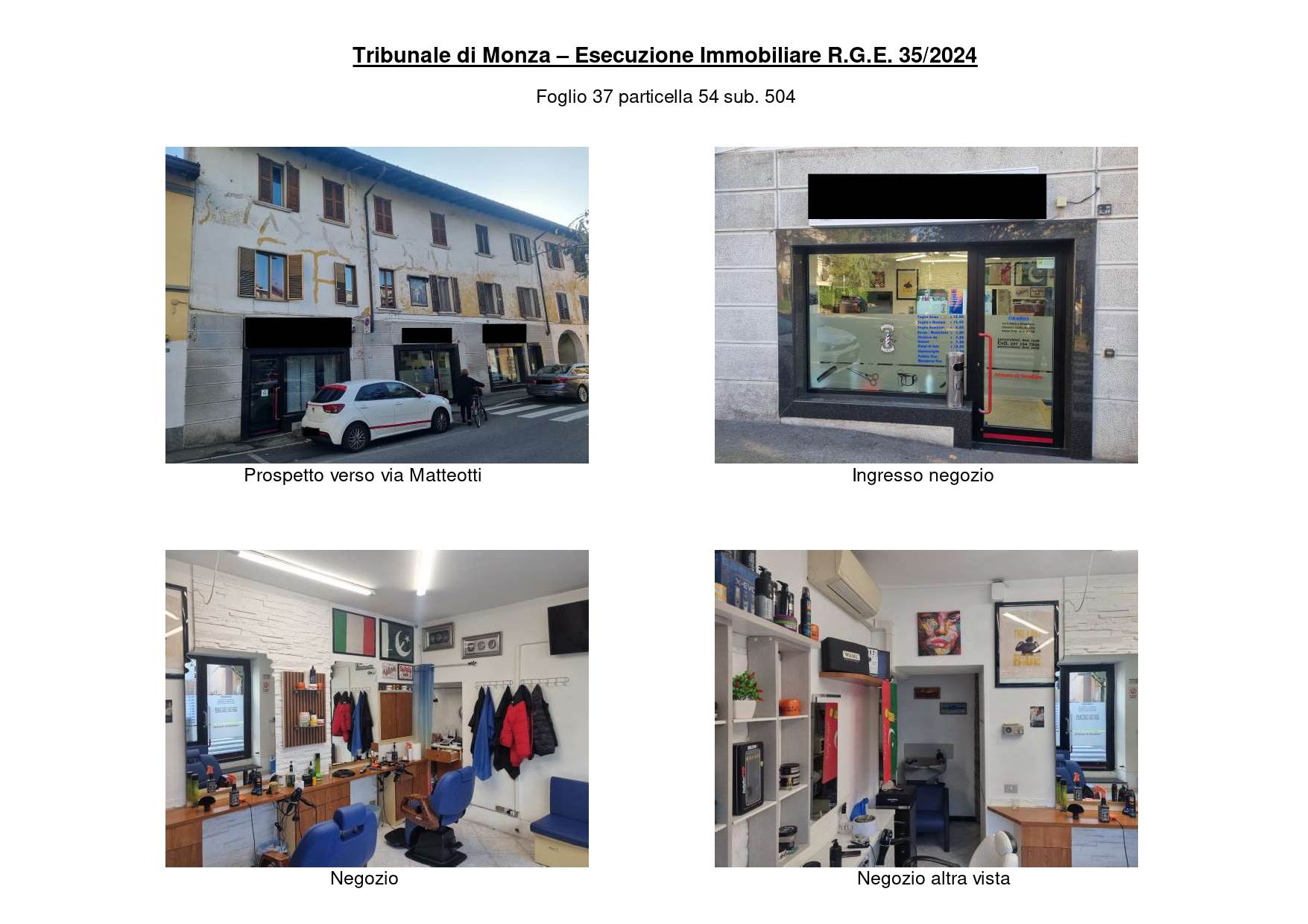 negozio a desio, via g. matteotti 39, della superficie di 34,00 mq. piano terra: negozio, disimpegno e wc. occupato da terzo con contratto di affitto tipo 6 anni, stipulato il 03/01/2022, con scadenza il 10/01/2027.