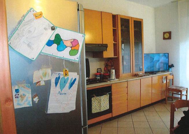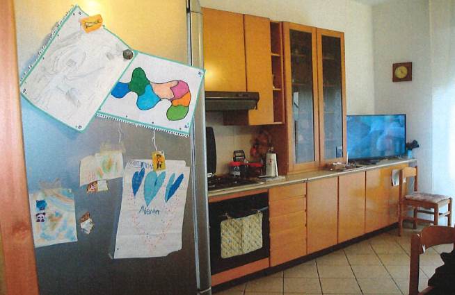appartamento al 1° piano composto da cucina, 2 camere da letto, locale di servizio, ripostiglio, bagno, cantina e box di 11 mq pertinenziali.