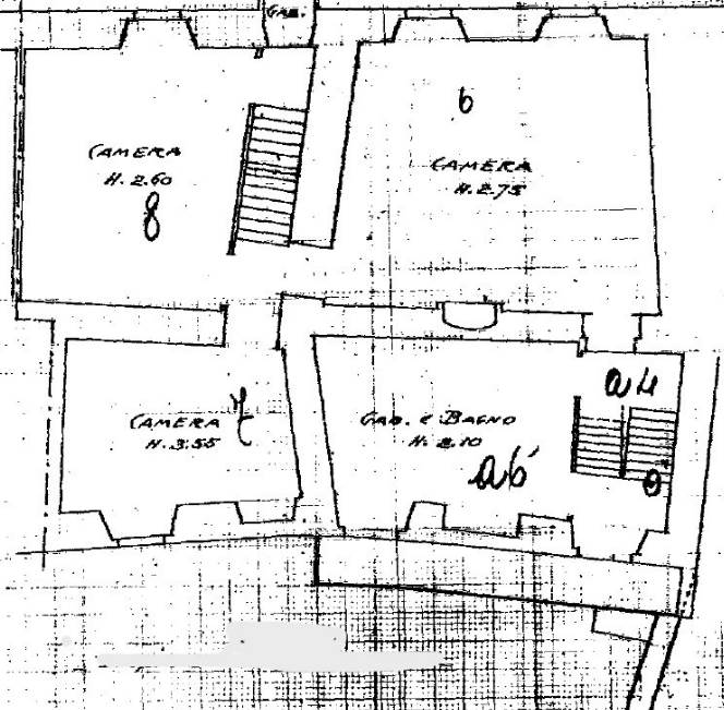 Piano primo: tre vani al rustico, una camera e balcone