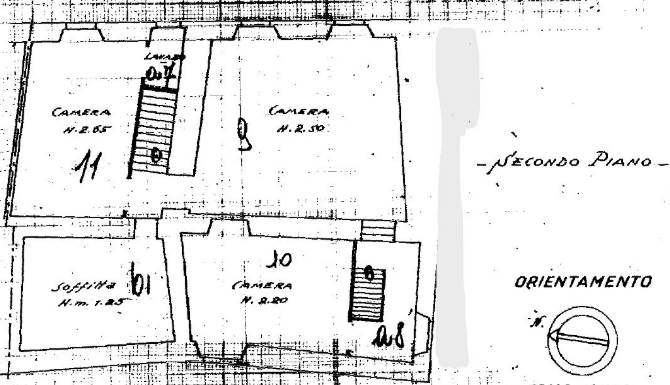 Piano secondo: vano al rustico, soggiorno, bagno e soffitta