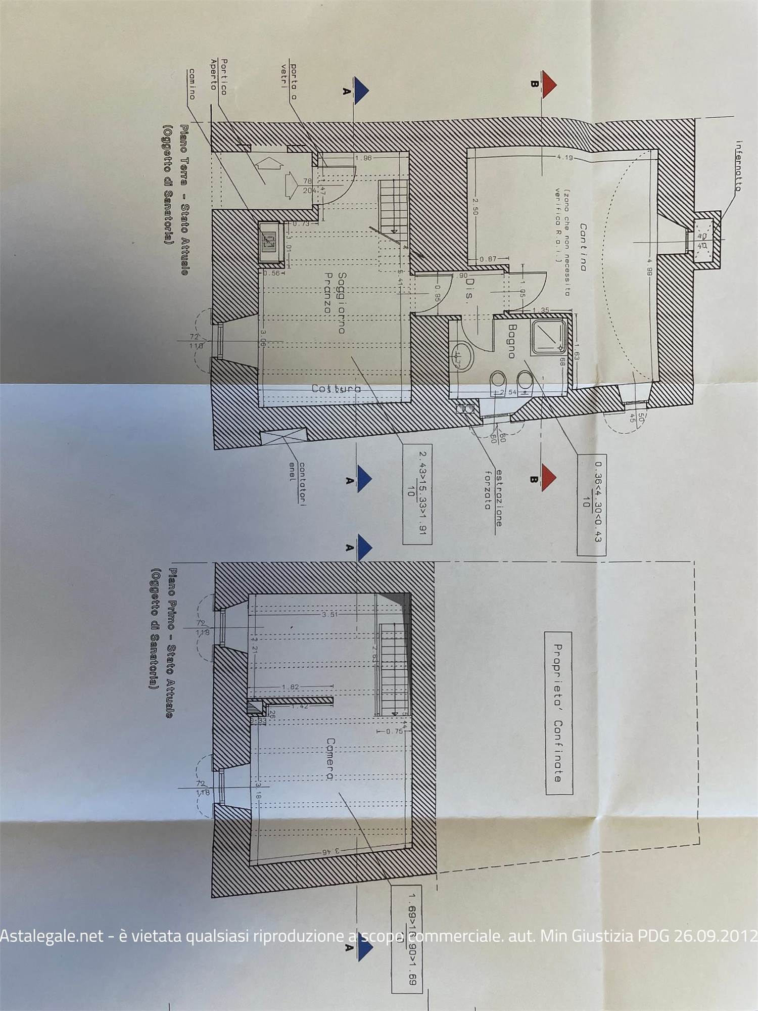 appartamento al piano terra -seminterrato e primo con disimpegno, zona giorno con cucina, cantina e bagno, scala per il piano superiore che accede ad un vano aperto utilizzato come zona notte