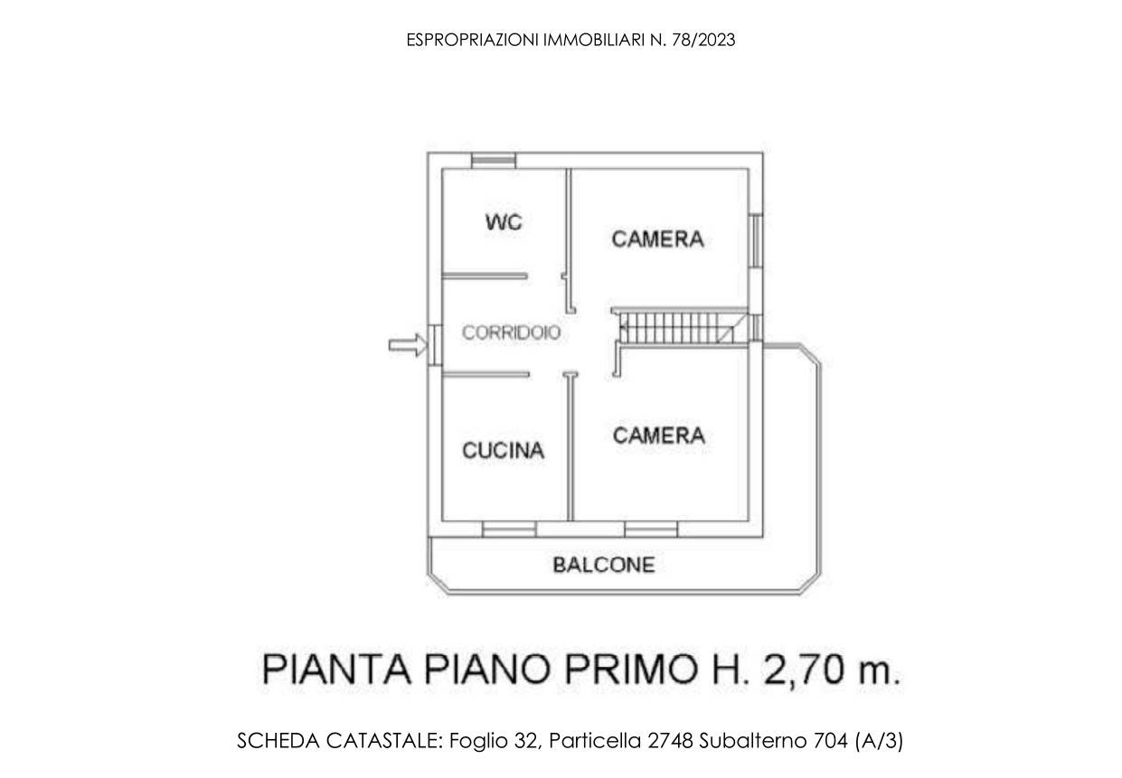 Appartamento composto da: ingresso/disimpegno, 3 locali, bagno, ripostiglio e balcone al p.1.