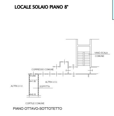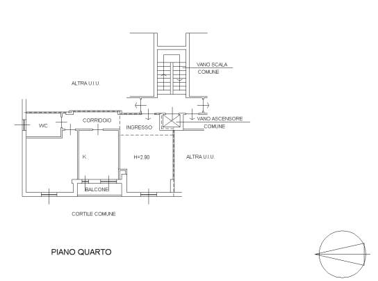 Appartamento posto al piano quarto composto da: ingresso, due locali, cucina, bagno e balcone con vano pertinenziale di solaio nel sottotetto.